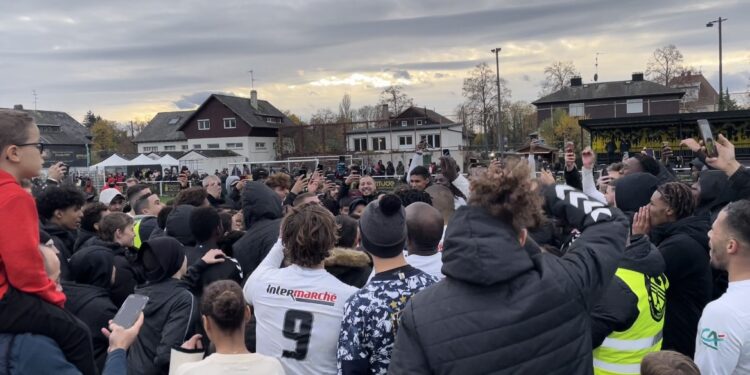 Le premier coup de tonnerre de la partie est venu d’Habib Ibrahim Sidow. A quelques secondes de la mi-temps, l’ailier droit strasbourgeois – jusque-là peut-être un peu trop hésitant lors de ses prises de décisions -, a choisi le meilleur moment pour venir tromper le portier de l’équipe visiteuse, Dorian Chiotti (1-0, 45′). « Certes, le début de match était difficile face à cette équipe de National 2. Mais on a joué notre jeu pour nous libérer. Concernant mon but juste avant la pause, je me suis tout simplement fait confiance lorsque je me suis présenté devant le gardien. J’ai tenté une enroulé, c’est passé !, a expliqué à chaud l’attaquant de 26 ans. Je suis hyper fier et rempli d’émotions. On savait ce qu’on devait faire en pénétrant sur la pelouse, et on a réussi. C’est la deuxième fois de ma carrière que je me qualifie pour les 32es de finale de la Coupe de France. Et avec cette équipe, c’est encore mieux, a-t-il ajouté avant d’être contaminé par l’euphorie des jeunes licenciés du club l’ayant rejoint sur le rectangle vert. C’est énormément de plaisir de voir tous ces jeunes heureux. Ils peuvent se rendre compte qu’on a été capable de le faire. Ils doivent prendre exemple là-dessus pour reproduire ça plus tard ! »