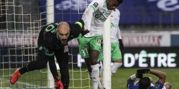 Si le gardien numéro 1 de l’AS Saint-Etienne Jessy Moulin gardait les cages des Verts ce dimanche, les visiteurs se sont présentés sans numéro 2 face au Racing. Après la cascade de forfaits dû au Covid-19, se sont un gardien, sept défenseurs, huit milieux de terrain et deux attaquants qui ont composé les 18 joueurs Stéphanois. (Crédit photo @Sport.fr)