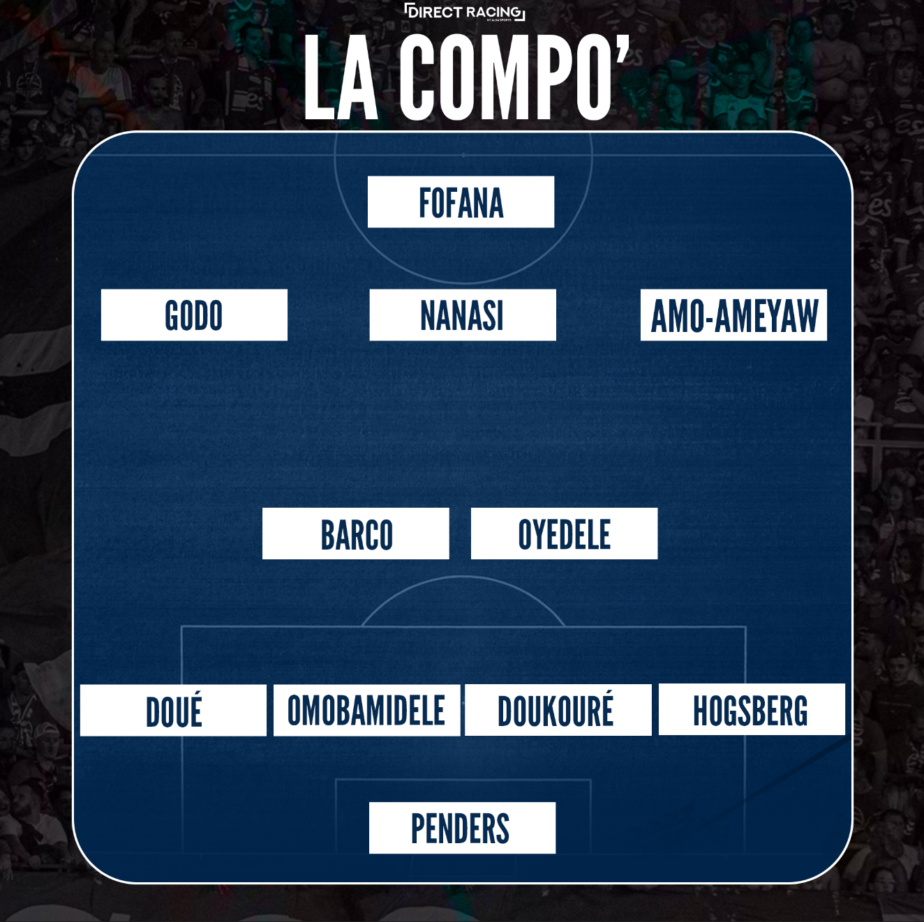 Penders – Hogsberg, Omobamidele, Doukouré, Doué, Barco, Oyedele, Godo, Nanasi, Amo-Ameyaw, Fofana