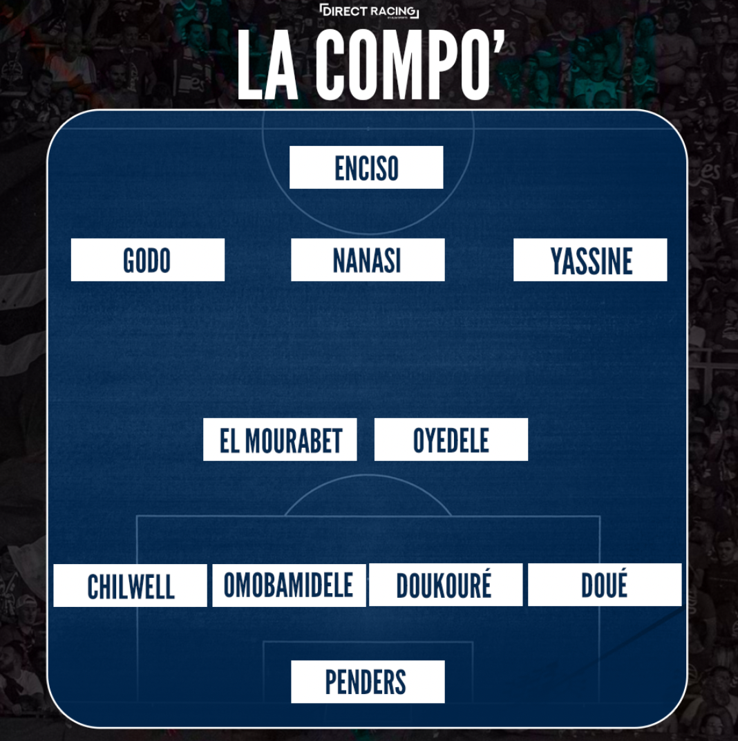 Le 11 : Penders – Chilwell, Omobamidele, Doukouré, Doué, El Mourabet, Oyedele, Godo, Nanasi, Yassine, Enciso
