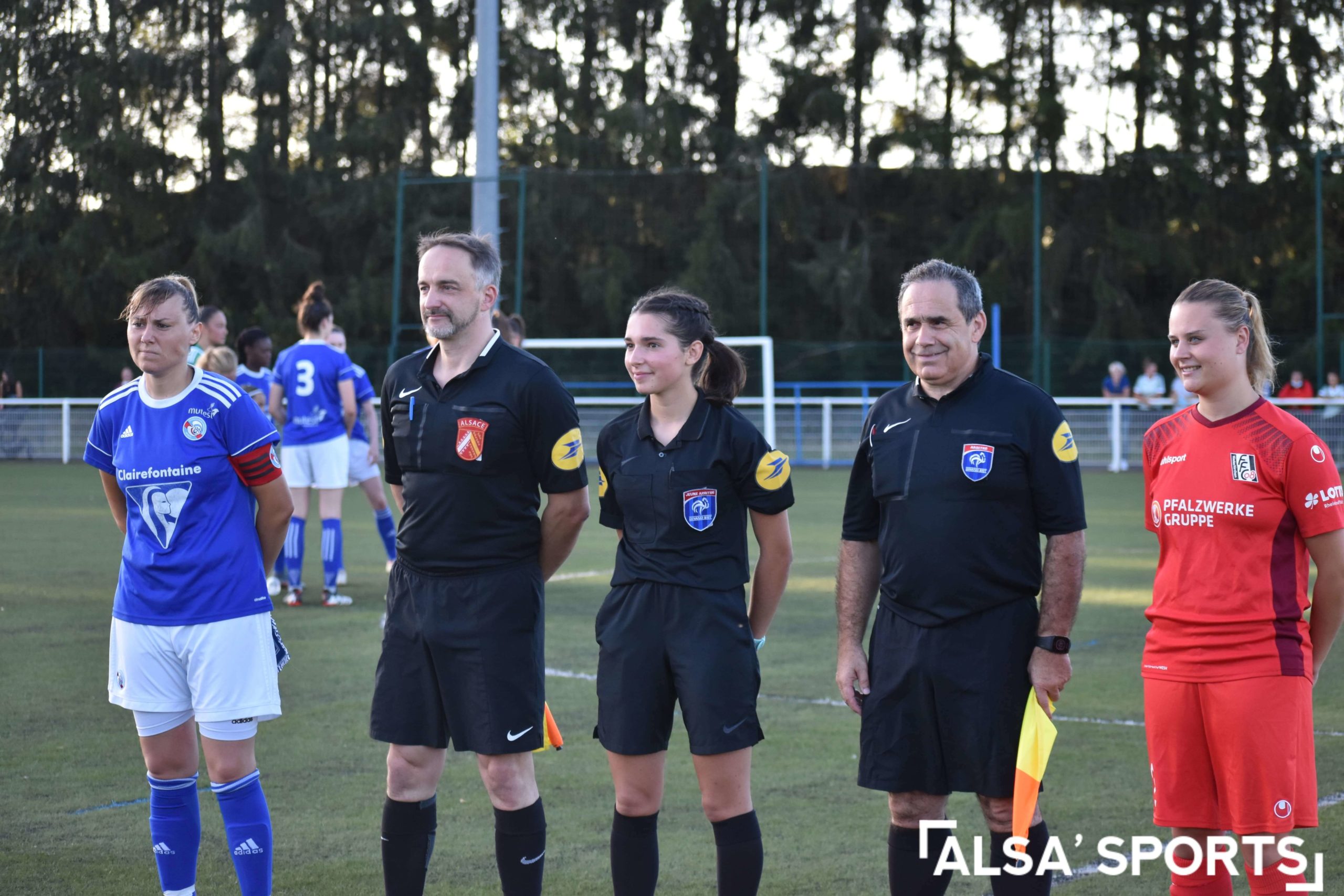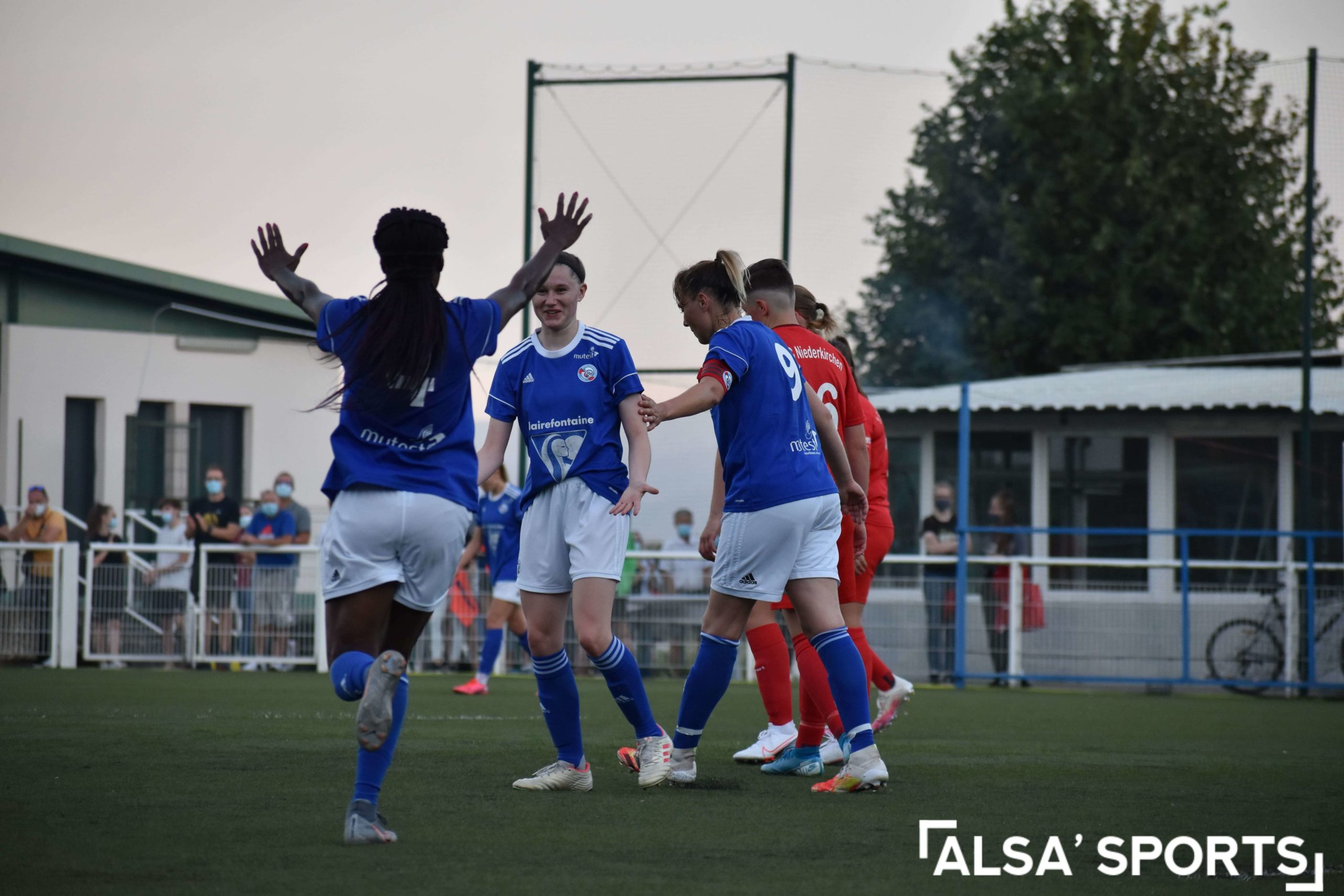 Match amical de gala hier soir sur le terrain de l’AS Hatten où les joueuses du RC Strasbourg (D2) affrontait leurs homologues d’outre-Rhin du FFC08 Niederkirchen (2 Bundesliga). Après deux premières victoires face à d’autres équipes allemandes, les joueuses de Vincent Nogueira se sont imposées face aux promues en deuxième division allemande. Les bleus ont rapidement ouvert la marque avec un but de Madeline Roth (10ème) avant de faire le break juste avant la mi-temps avec une réalisation de Joséphine Palin (41ème). Après 90 minutes d’occupation de la surface adverse et de nombreuses occasions, Madeline Roth scella le score avec un doublé dans les arrêts de jeu (90ème). Score Final 3-0.