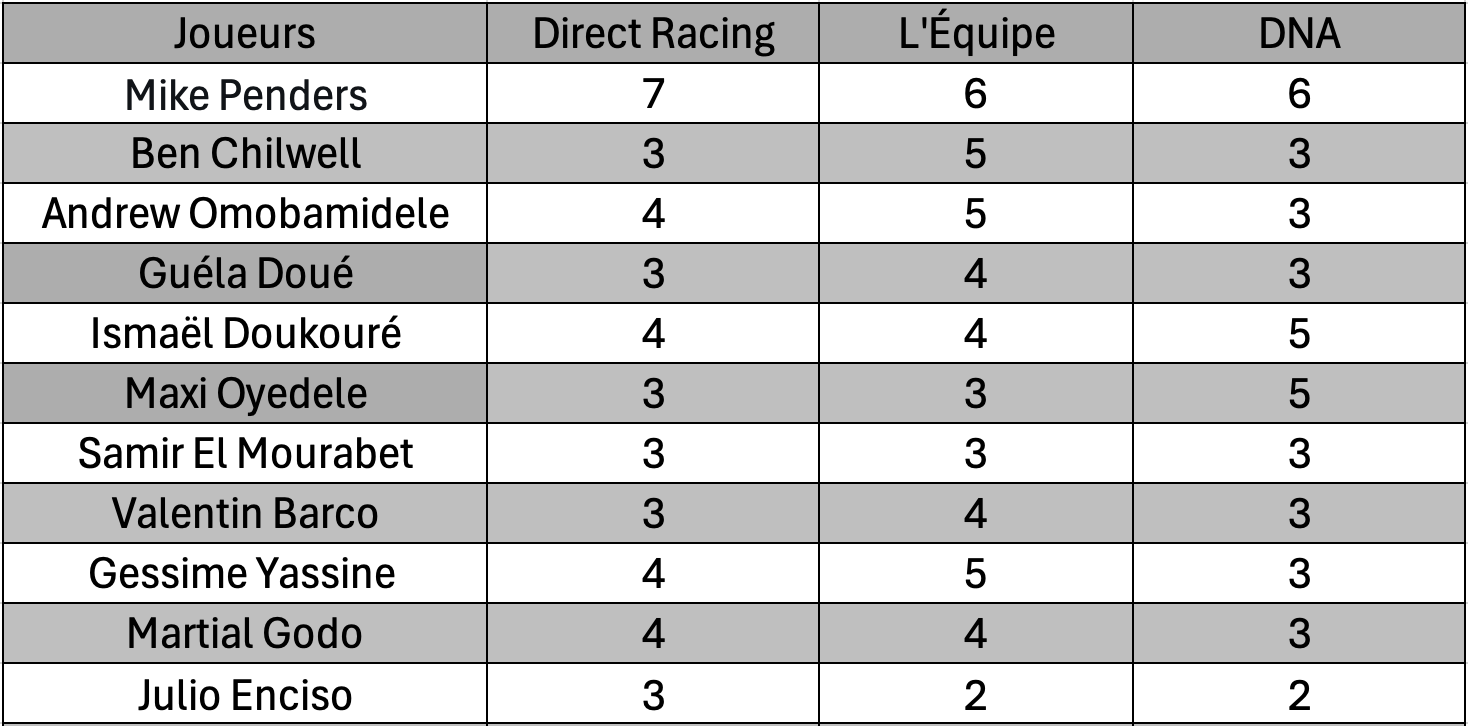 Dans tous les secteurs de jeu, le constat est sévère. Défensivement fébriles, dépassés dans l’impact et trop imprécis techniquement, les Strasbourgeois n’ont jamais réellement été en mesure de rivaliser. Les notes de la presse traduisent d’ailleurs cette prestation collective décevante, avec une majorité de joueurs en difficulté, à l’image de Chilwell, Doué ou encore Oyedele, tous en grande souffrance.