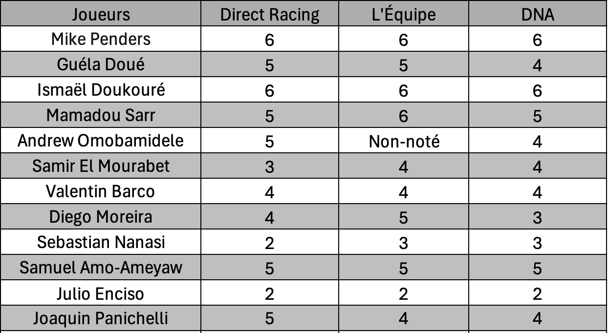 Malgré une large possession de balle, le Racing Club de Strasbourg n’a jamais su réellement inquiéter Lorient, ne cadrant que deux frappes sur l’ensemble du match. Une nouvelle prestation offensivement stérile, où la maîtrise territoriale n’a une nouvelle fois pas été transformée en occasions franches. Après ce triste 0–0 à la Meinau, les notes de la presse reflètent logiquement ce manque d’impact et d’inspiration dans le jeu strasbourgeois.